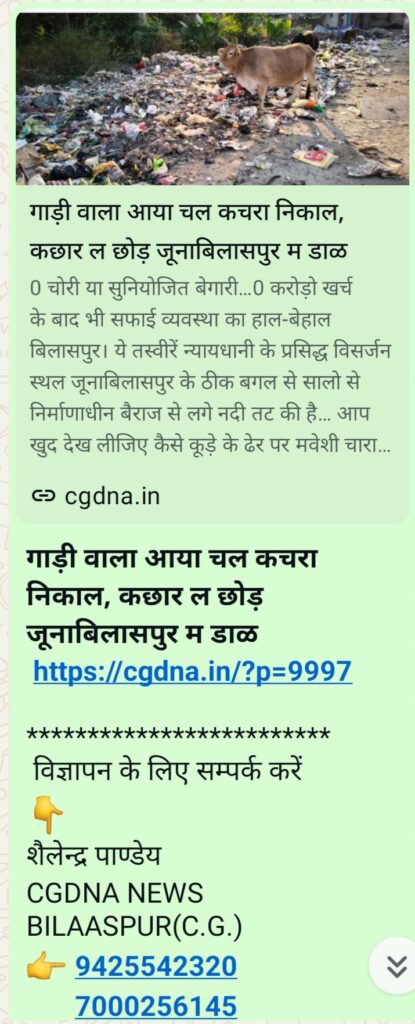 सीजीडीएनए न्यूज़ ने शनिवार को गाड़ी वाला आया चल कचरा निकाल शीर्षक के साथ खबर प्रसारित कर निगम के जिम्मेदार अफसरों का ध्यान आकृष्ट करने का प्रयास किया