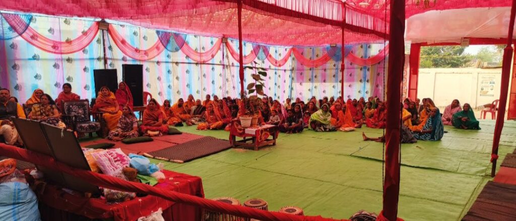 भगवान ब्रह्मा जी ने सृष्टि रची परं उसमें न ज्ञान था, न स्वर तब माँ सरस्वती वीणा की झंकार के साथ प्रकट हुईं। जिससेअज्ञान काँप उठा“ॐ ऐं सरस्वत्यै नमः” का मंत्र गूंजने लगा। इसके साथ ही उन्होंने राधा-कृष्ण के रस में द्रवित होने और माता तुलसी के उत्पत्ति के त्याग और भक्ति की कथा बताई कि कैसे वृंदा नाम की पतिव्रता स्त्री ने अपने तप के बल से भगवान श्री विष्णु से अपने पति जालंधर के प्राणों की रक्षा की।कैसे भगवान श्री नारायण उनकी भक्ति देख द्रवित हो उठे और माता वृंदा को वर दिया कि “तुम तुलसी बनोगी, आज भी हर द्वार पर तुलसी मौन में कहती हुई खड़ी है कि
