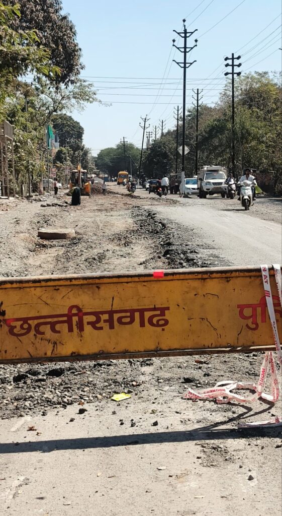 अरपापार राजकिशोर नगर स्मृतिवन- शनिमंदिर रोड पर करीब माह भर से बेतरतीब ढंग से सड़क को खोदकर सड़क बनवाने का काम कराया जा रहा। गड्ढे के सामने छत्तीसगढ़ पुलिस का एक स्टॉपर लगा दिया गया है, दिन में तो यहाँ कोई समस्या नही पर रात में समस्याओं का अंबार है क्योंकि यहां सड़के खुदी और अंधकार है करोड़ो की स्ट्रीट लाइटे कई माह से ठप पड़ी है ऐसे में यहां कभी भी कोई बड़ी अनहोनी हो सकती है पर किसी को कोई मतलब ही नही है।