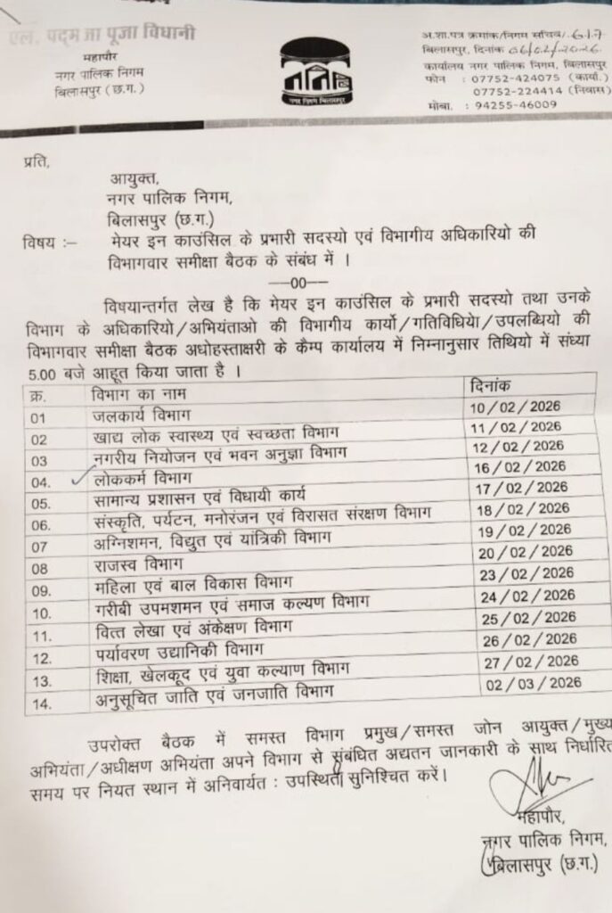 दरअसल मेयर पूजा विधानी ने अपने निवास कार्यालय आईजी ऑफिस के सामने 10 फरवरी से 3 मार्च तक मेयर इन काउंसिल के प्रभारी सदस्यो एवं विभागीय अधिकारियो की विभागवार समीक्षा बैठक तय किया था। तय कार्यक्रम के तहत कल मंगलवार को जलकार्य विभाग की बैठक हुई, बैठक में जलकार्य विभाग की प्रभारी सदस्य, एसई, सभी जोन के जोन कमिश्नर और विभागीय अफसर मौजूद रहे एमआईसी सदस्य ने अलग अलग वार्डो से आ रही जलसंकट, दूषित जल सप्लाई और गर्मी मै और संकट गहराने का हवाला दे तत्काल व्यवस्था बनाने की मांग की,वही विभागीय अफसरो ने भी खुलकर बात रखी कि न फंड है न स्टोर मे सामान मांग- मांगकर उधारी में किसी तरह काम चला रहे, पम्प सॉकेट कुछ भी नही है। जिससे विभागीय कार्यों / गतिविधियो / उपलब्धियो के लिए बुलाई गई बैठक वही समाप्त हो गई अधिकारियों ने मेयर से कहा कि शासन से फंड की मांग कर व्यबस्था बनाइये नही तो गर्मी में स्थिति बिगड़ जाएगी। पहली ही बैठक में फंड की कमी का फटाखा क्या फूटा दूसरे दिन बुधवार को होने वाली खाद्य लोक स्वास्थ्य एवं स्वछता विभाग की बैठक ही स्थगित कर दी गई।