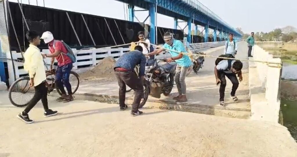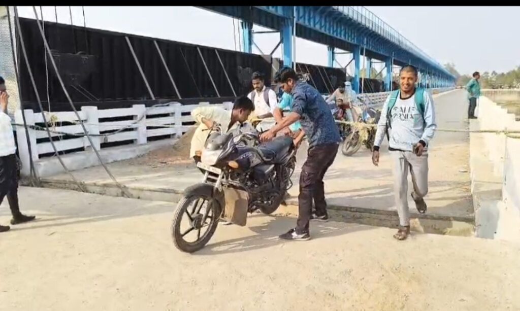 इन तस्वीरों में आप खुद देखिये कैसे चाँटीडीह शराब दुकान के सामने और रपटा में जाम लगने के कारण लोग कैसे गाड़ी दौड़ाते बैराज पार कर या तो लौट रहे…या फिर जान को जोखिम में डालकर आवागमन कर रहे है, दरअसल ले देकर एप्रोचरोड बनने के बाद जूनाबिलासपुर साइड में बैराज का केबल डालने गड्ढा छोड़ दिया गया है… यही सारे संकट की जड़ है… जिसकी मार आमजनमानस को झेलना पड़ रहा जिम्मेदार अफसर और ठेका फर्म किसी को कोई मतलब ही नही है।