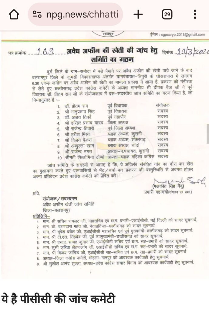 इधर कांग्रेस ने भी अफीम की अवैध खेती के मामले में जान के लिए पूर्व विधायक डॉ प्रीतराम के संयोजकत्व में 10 सदयीय कमेटी का गठन किया है,…