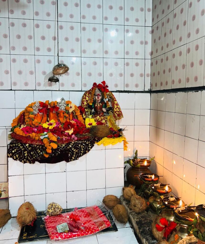 समस्त महिला कार्यकर्ता एवं ग्रामवासी पूजन और सेवा कार्य मे लगे है।
