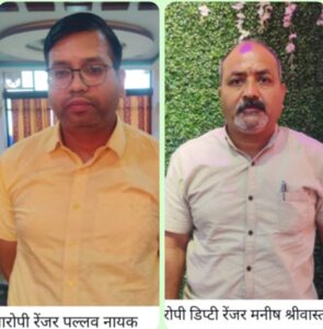 डिप्टी रेंजर मनीष श्रीवास्तव और रेंजर पल्लव नायक को धरदबोचा, आरोपी डिप्टी मनीष श्रीवास्तव से बरामद कर उनके खिलाफ धारा 7 और आरोपी रेंजर पल्लव नायक के विरुद्ध धारा 7,12 भ्रष्टाचार निवारण अधिनियम 1988 के तहत कार्यवाही की गई।