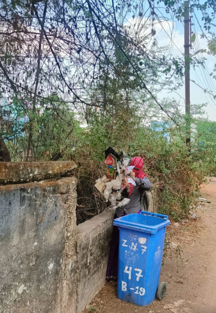 ऐसा क्यो कर रही पूछने पर महिला कर्मी ने बताया कि दो-तीन दिन से डोर टू डोर कचरा संकलन करने वाली गाड़ी ही नही आ रही इसलिए आज यहां फेका है, जबकि यहाँ रोज कचरा फेका जा रहा