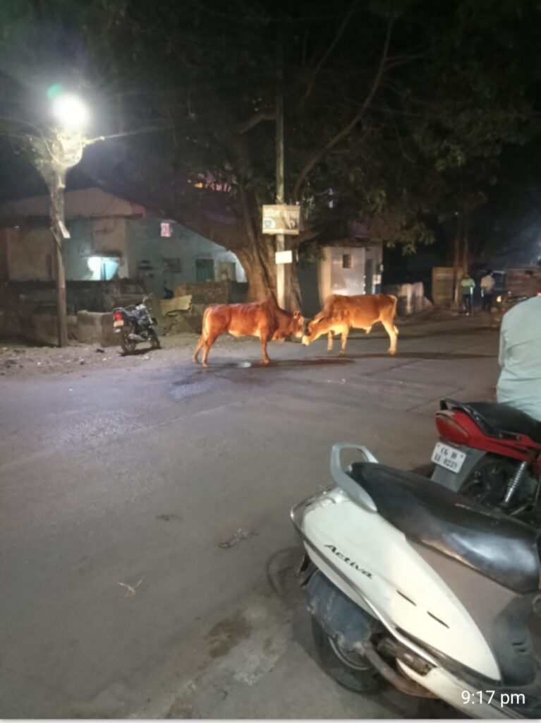 शहर के मुख्यमार्ग, गलियों और शहर सीमा से लगे हाइवे की सड़कों पर जगह-जगह मवेशियों के झुंड के दृश्य आम है जबको दिखाई दे रहे पर पता नही क्यो जिम्मेदाद इससे बेखबर है…?