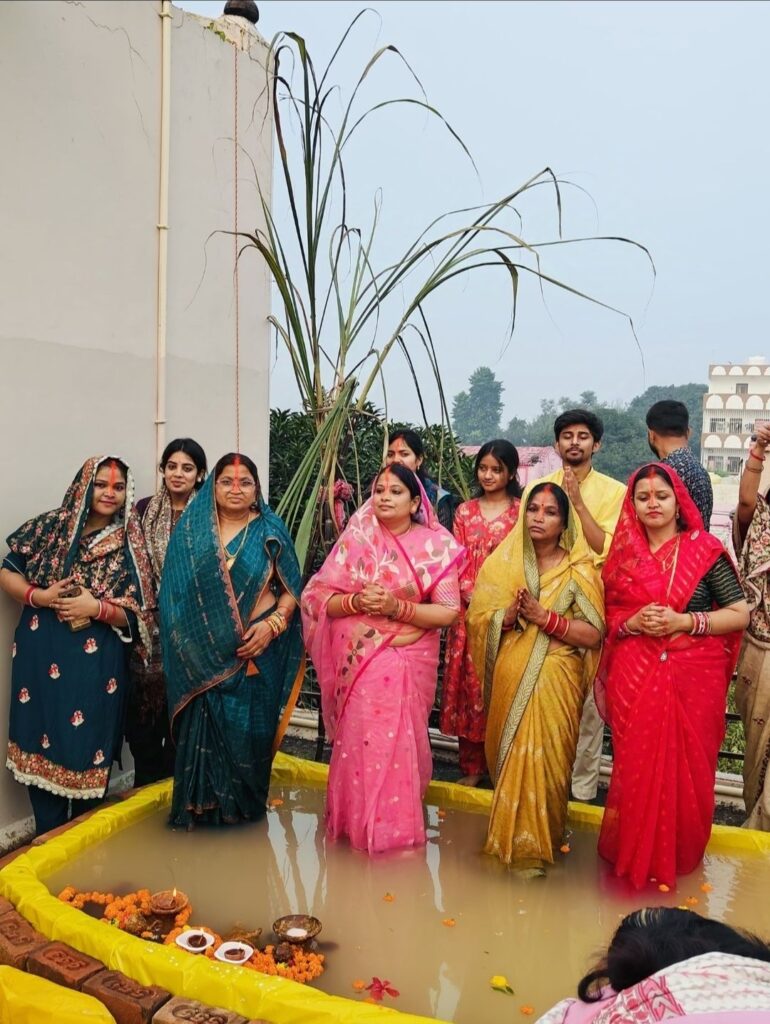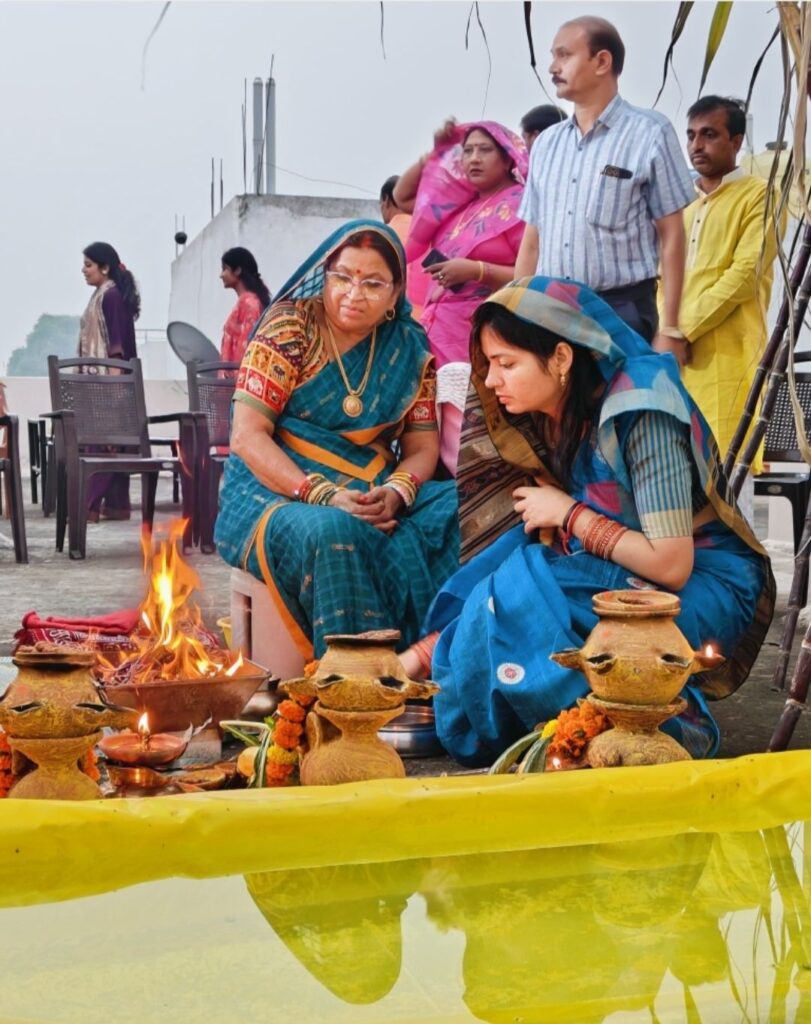 वही सरकंडा सीपत रोड स्थित नगर निगम के रिटायर्ड डॉ अशोक दीक्षित ने अपनी पत्नी भाई वरिष्ठ पत्रकार संजय दीक्षित पुत्र व पुत्र वधुओ और परिजनों स्नेहीजनों के साथ घर के छत पर बनाये गए तालाब में खड़े होकर उगते हुए सूर्य को अर्घ्य अर्पित कर सुख, समृद्धि की कामना की।