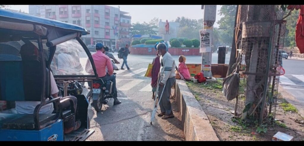 महानगर के नेहरू चौक पर भीख मांगते भिखारी