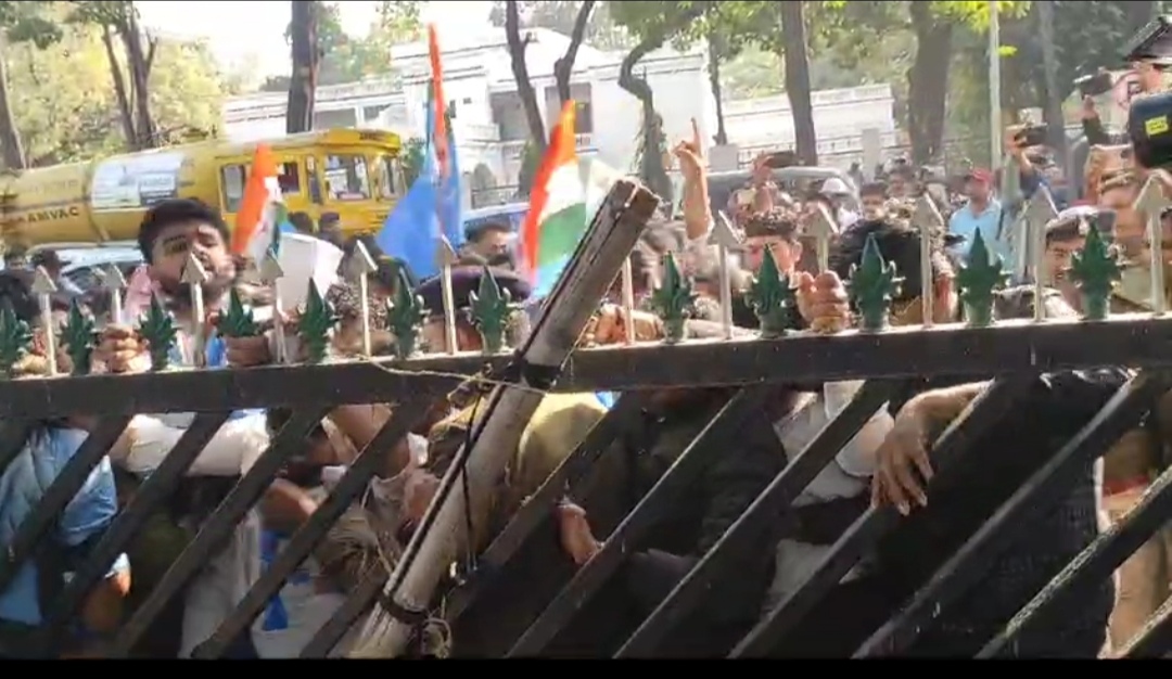 जिलाध्यक्ष रंजीत सिंह के नेतृत्व में अर्थी लेकर कलेक्ट्रेट के गेट पर पहुचे छात्रों के समूह को देख सिपाही ने आनन- फानन में गेट पर ताला लगाया। उत्तेजित छात्र नारेबाजी करते हुए अंदर घुसने की कोशिश करने लगे तभी पुलिस बल ने अर्थी को छिनने का प्रयास किया जमकर झूमा झटकी हुई।