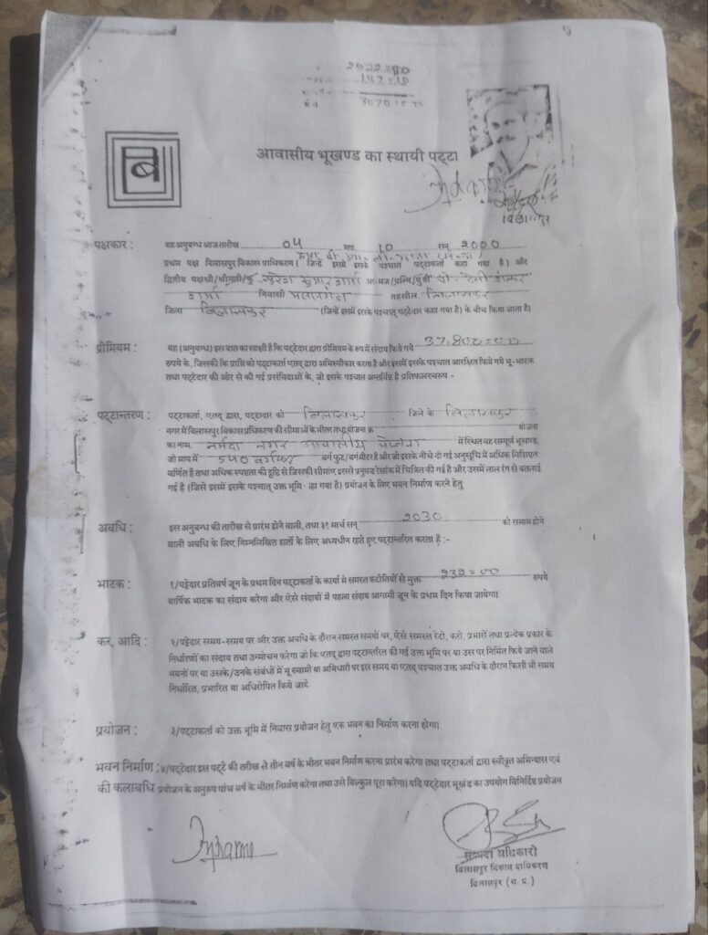 0दिया गया आवासीय भूखण्ड का स्थाई पट्टा, किराए पर दे दिया निजी बैंक को