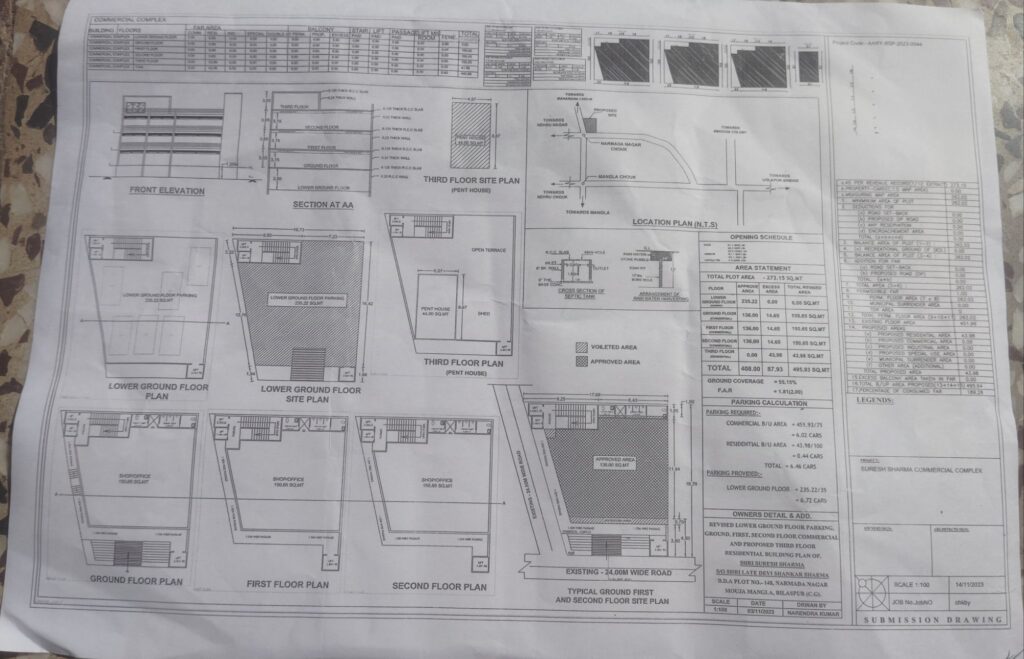 0 भवन अनुज्ञा में थर्ड फ्लोर में पेंट हाउस ढलवा दिया लेंटर