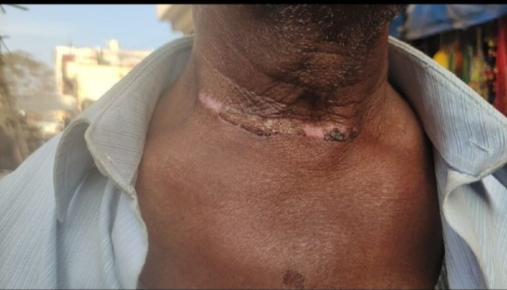 बिलासपुर,,, तेलीपारा मुख्य मार्ग में गत 30 दिसंबर को बड़ा हादसा टल गया! मोहल्ले में रहने वाला रमेश कुमार शुक्ला अपने घर जा रहे थे तभी किशोर फुट वियर के गोदाम के सामने खाली किये जा रहे ट्रक की रस्सी उसके गले मे फंस गई और वे वही गिर गए उन्हें आरबीएस अस्पताल में भर्ती कराया गया उनके गले मे अभी भी जख्म के निशान है।