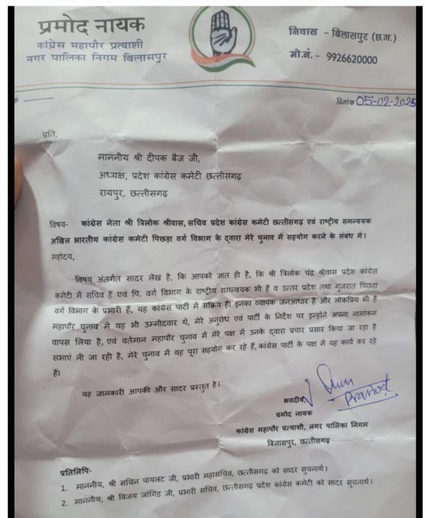 0 ब्लाक कांग्रेस कमेटी के अध्यक्ष और जिला पंचायत बिलासपुर क्षेत्र क्रमाक 1 से कांग्रेस की अधिकृत प्रत्याशी सुनीता सत्येन्द्र कौशिक ने भी ऐसी हो शिकायत की है।