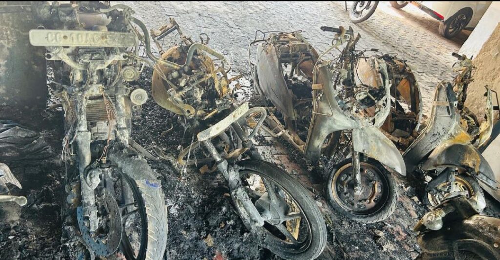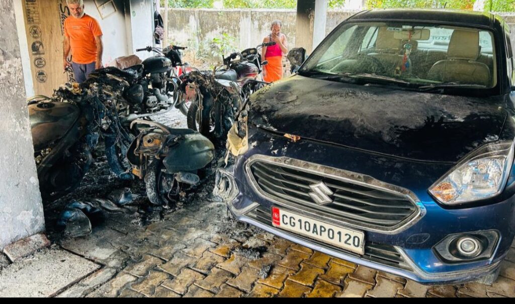बिलासपुर। तोरवा पुल के पास वैशाली रीजेंसी अपार्टमेंट में रविवार- सोमवार की दरम्यानी रात पार्किंग में खड़ी 10 बाइक जलकर खाक हो गई, वही कर के एक साइड का हिस्सा भी जल गया।