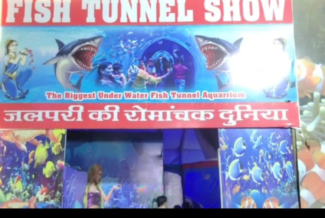 जलपरी गर्ल्स रसिया से आई है, जो रंग बिरंगी मछलियों के टनल के बीच पानी भरे शीशे के भारी भरकम पारदर्शी टैंक के अंदर शाम 6 बजे से रात 11 बजे तक मनमोहक कलाबाजियां दिखला रही है।