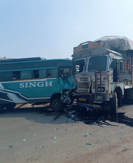 राजमार्ग के पथरिया मोड़ पर ट्रक और यात्रियों से भरी बस में टक्कर, बस सवार 20 यात्री घायल