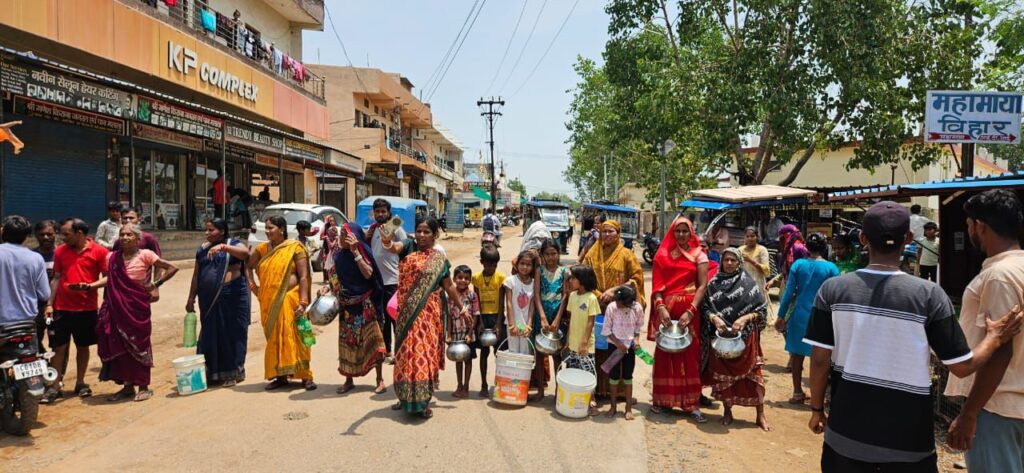 बिजलीं संकट से परेशान सिरगिट्टी के परेशान नागरिक तिफरा विद्युत मुख्यालय का घेराव और प्रदर्शन करते