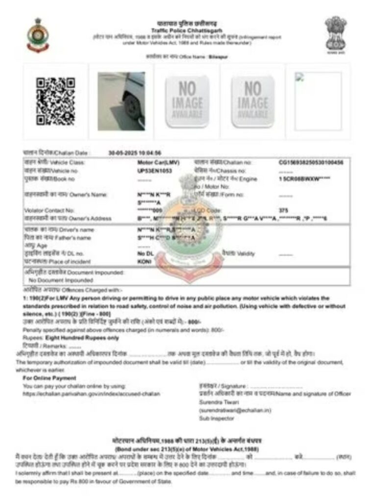 क्योकि गोरखपुर के शाहपुर इलाके के अधिवक्ता नवीन कुमार सिंघानिया की कार का नम्बर यूपी 53 ईएन 1053 है, जो गोरखपुर क्षेत्रीय जिला परिवहन कार्यालय से पंजीकृत है। गत 30 मई की सुबह उनके मोबाइल पर 800 रुपये के ट्रैफिक चालान का एसएमएस आया, अधिवक्ता ने लिंक पर क्लिक किया तो पता चला कि यह चालान छत्तीसगढ़ के बिलासपुर जिले से जारी हुआ है, वे हैरान रह गए, उन्होंने मामले की गंभीरता को समझते हुए