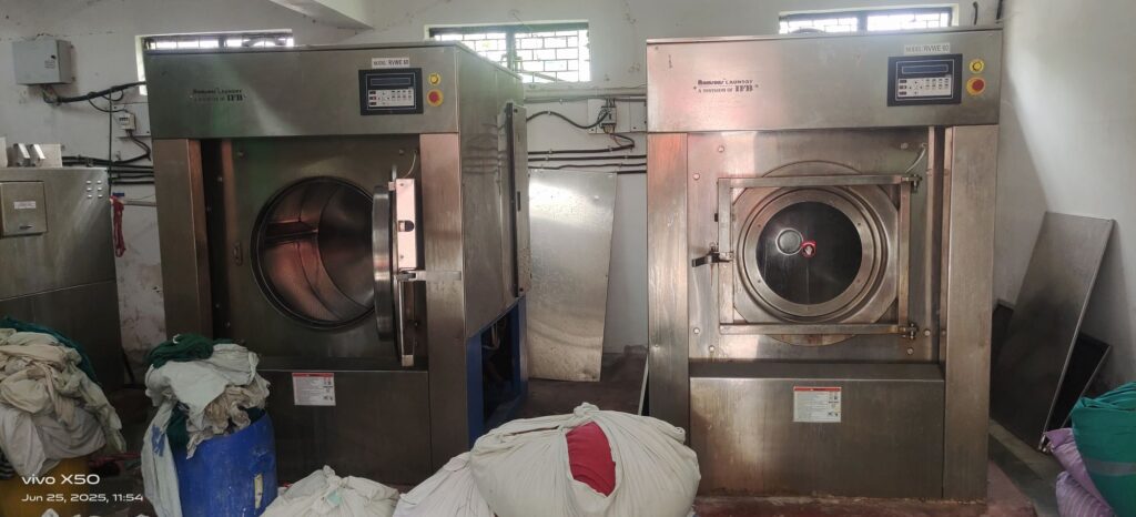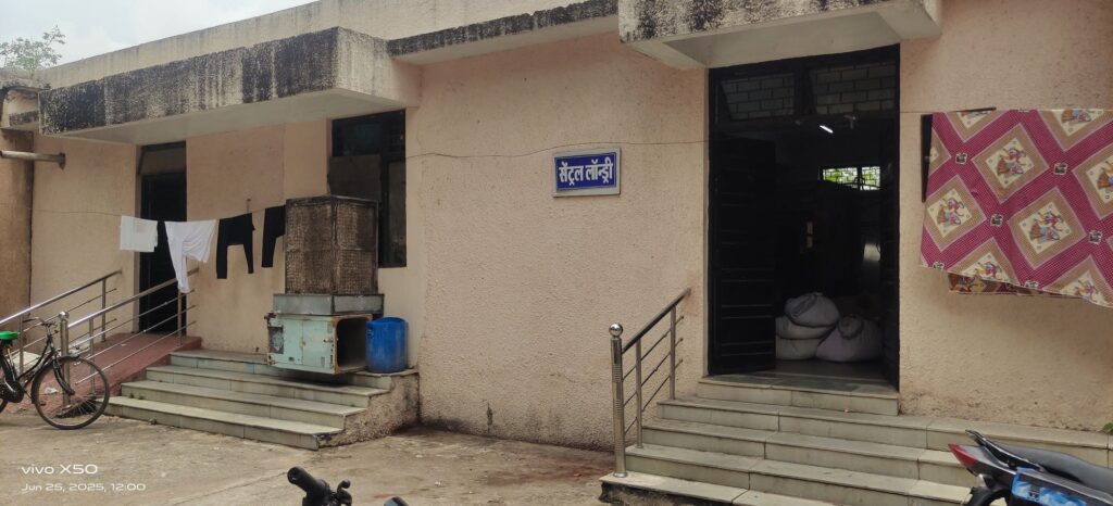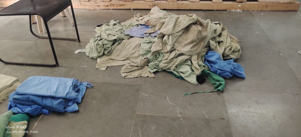 इन तस्वीरों में आप खुद देख लीजिए कैसे वाशिंग मशीन के दायर से चादरों को पानी मे डुबो डुबो कर बिना सर्फ साबुन के निकालकर सुखाकर वार्डो में तहाकर भेजा जा रहा है!