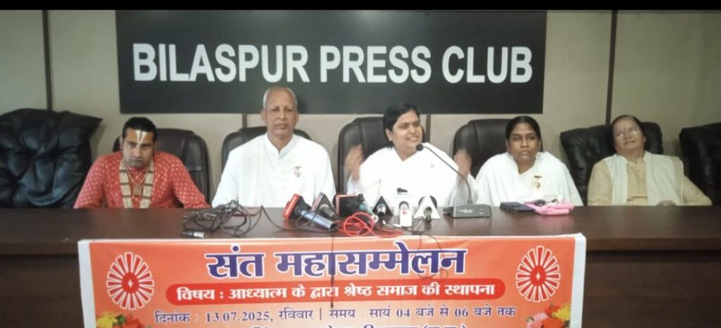 महा संत सम्मेलन का आयोजन किया गया है। इसी आयोजन को लेकर ब्रह्माकुमारी राखी दीदी,ब्रह्म कुमार नारायण भाई, आचार्य महामंडलेश्वर कमल किशोर, ब्रह्माकुमारी भारती दीदी कटनी, विनीता भावनानी और आचार्य पुष्पेंद्र ने बिलासपुर प्रेस क्लब में पत्रकारों के समक्ष जानकारी साझा करते हुए बताया कि…