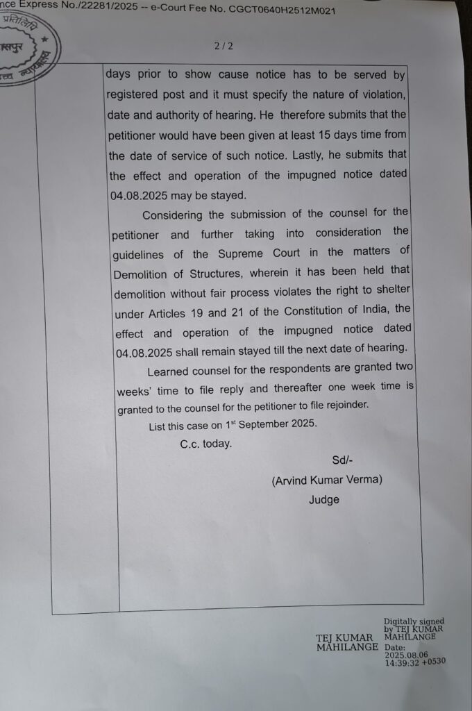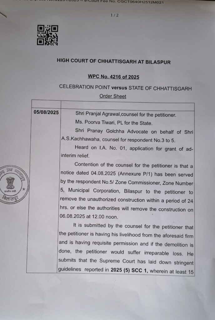 बिलासपुर,,,, एक बार फिर निगम प्रशासन पर पक्षपात की उंगलियां उठ रही है! मामला एक कारोबारी के घर और शादी भवन का है! जिसे कभी नपवाने की धमकी तो कभी तोड़ने का नोटिस भेजकर परेशान किया जा रहा ये आरोप है! इन भवनों के मालिक का हालाकि न्यायालय ने इस पर रोक का आदेश जारी किया है!