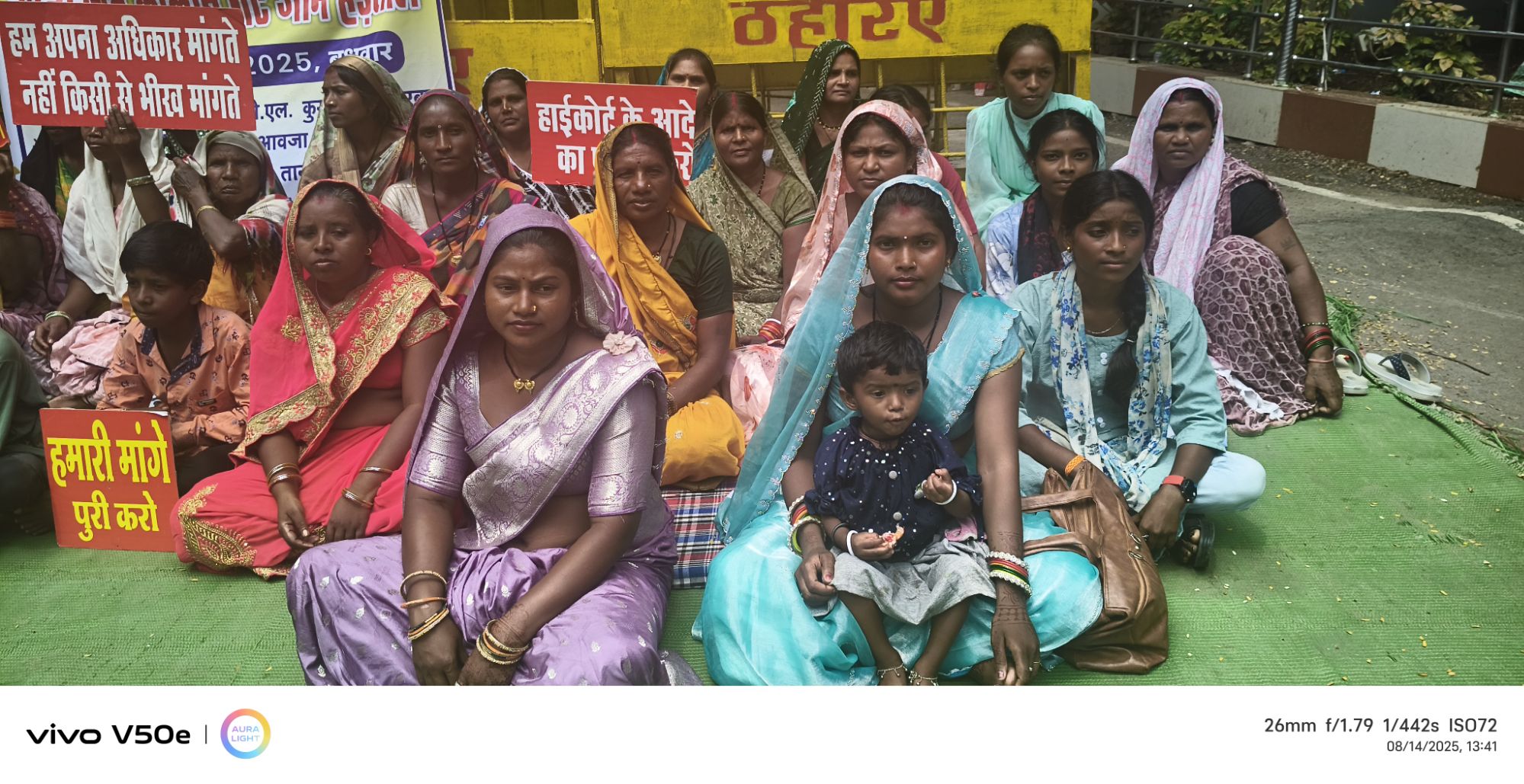 दूसरे दिन महिलाओ ने सरकण्डा सीपत रोड पर एसईसीएल मुख्यालय के गेट के सामने कड़ी धूप में धरना प्रदर्शन कर आवाज बुलंद की।