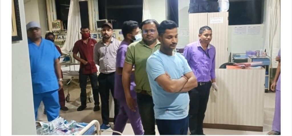 बिलासपुर – सोमवार देर रात जयराम नगर हरदाडीह निवासी 58 वर्षीय कामता प्रसाद नायक की मगरपारा के चर्चित किम्स अस्पताल में उपचार के दौरान मौत हो गई। आक्रोशित परिजनों ने अस्पताल में जमकर अवक्रोश जताया जिससे हंगामा मचा रहा। तनाव की सूचना पर पहुची पुलिस ने समझाबुझाकर आक्रोशित भीड़ को शांत करने सिविल लाइन में शिकायत दर्ज कराने कहा जिससे भीड़ किम्स प्रबंधन के खिलाफ सिविलब्लेन में शिकायत दर्ज कराने पहुची।