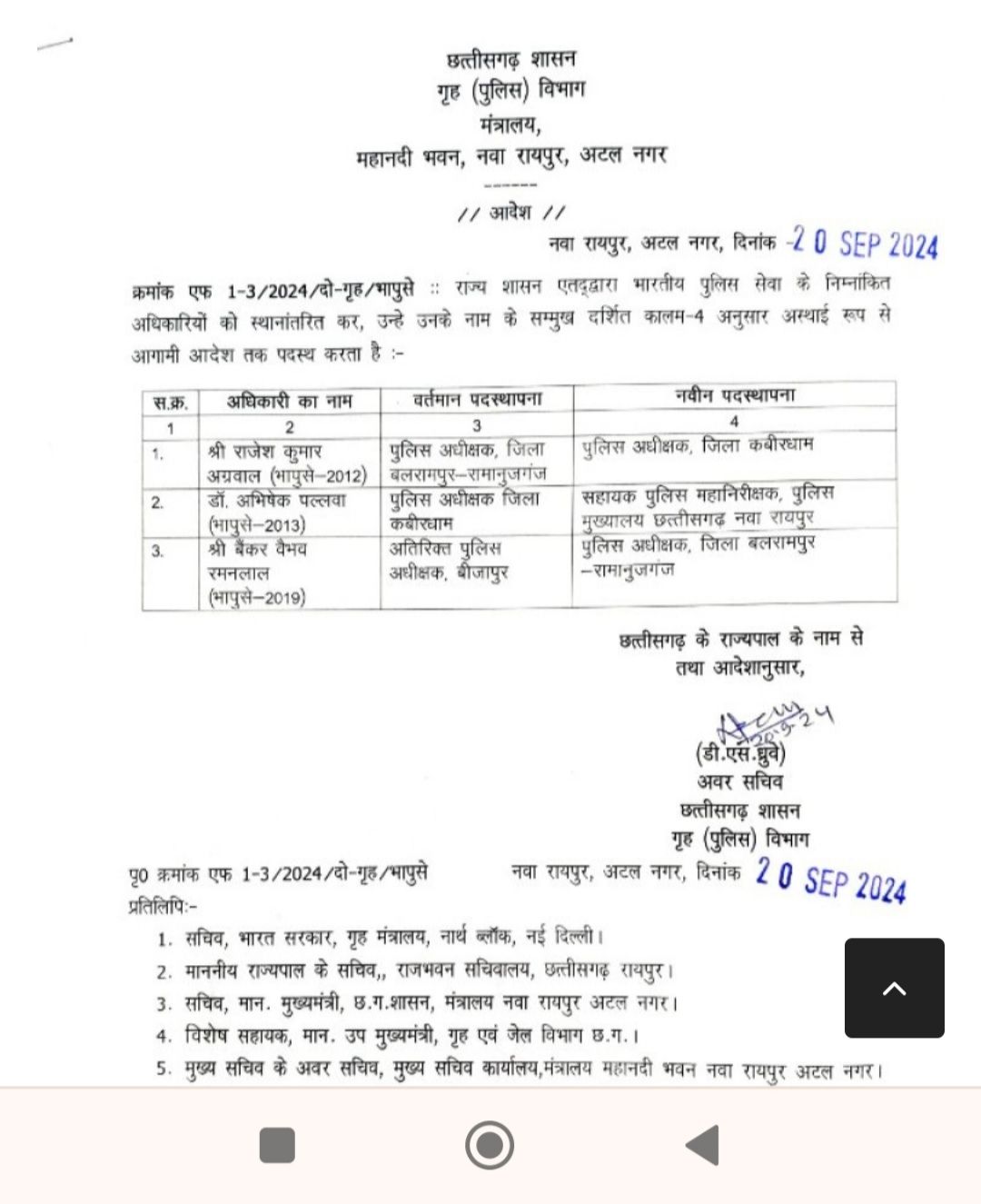कवर्धा से इस वक्त की बड़ी खबर सामने आ रही है, मुख्यमंत्री विष्णु देव साय ने बड़ा एक्शन लेते हुए मजिस्ट्रेट जांच के आदेश दिए हैं।कबीरधाम जिले के एसपी अभिषेक पल्लव और कलेक्टर जन्मेजय महोबे को हटा दिया गया है। वही राजेश कुमार अग्रवाल को पुलिस कप्तान की जिम्मेदारी दी गई है। साथ ही गोपाल वर्मा को कबीरधाम का नया कलेक्टर बनाया गया है।