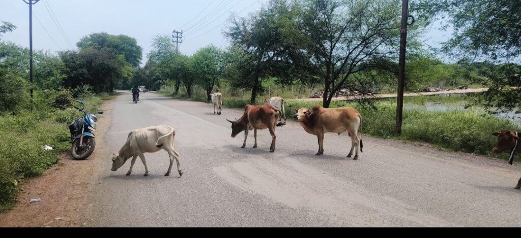 ये तस्वीरें मोपका सभरी गोठान के पास की है, देखिये कैसे इन मवेशियों को छोड़ दिया गया जो झुंड में सड़क पर घूम रहे है, यही मवेशी सड़को पर आ जाते है और झुंड बनाकर मोपका- छठघाट बाईपास रोड और शनिमंदिर तिराहे पर रोजाना झुंड लगाकर बैठे दिखाई देते है…