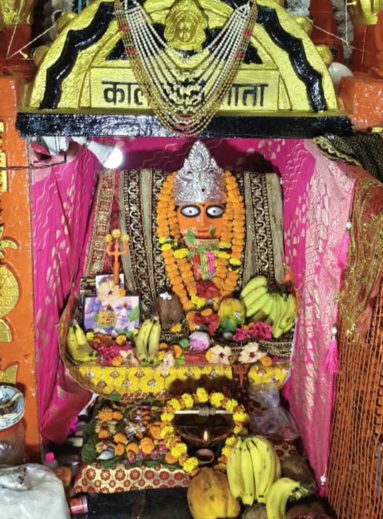 इसके बाद 3 रे दिन बच्ची एकदम ठीक हो गई और परिवार अपनी बच्ची को लेकर वापस लौट गया। इस अद्भुत घटनाक्रम के बाद बाबा ने जिस पेड़ के नीचे बच्ची के शरीर से प्रेतआत्मा निकली थी, उसी पेड़ के नीचे माता का चबूतरा बनाने नींव की खुदाई कराई इसी दौरान जमीन से माँ कालरात्रि की प्रतिमा प्रकट हुई, तब से यहां माता श्मशानवासिनी कालरात्रि विराजमान है। यहाँ रोज आठो काल बारहों माह सुबह- शाम माँ कालरात्रि की पूजा होती आ रही है…नवरात्र में हर साल विशेष आयोजन होता है, भक्त दूर – दूर से यहाँ श्मशानवासी भगवान भोलेनाथ और माता श्मशान वासिनी कालरात्रि के दर्शन करने पहुच रहे, मंदिर के मुख्यपूजारी बाबा सीताराम का कहना है कि माँ कालरात्रि यहाँ दरबार मे मत्था टेकने वालो की सारी मनोकामनाएं पूरी करती है सबकी झोली भरती है यही वजह है कि श्रद्धालु माता के दरबार मे दूर- दूर से मत्था टेकने पहुँचते है…।