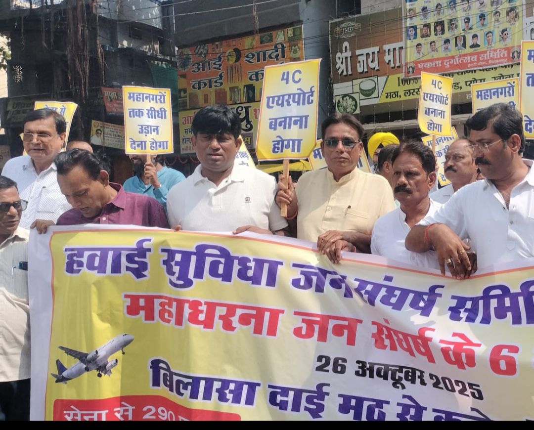 पूर्व शहर अध्यक्ष नरेंद्र बोलर ने कहा कि बिलासपुर को आज तक जो भी मिला संघर्ष से ही मिला, समिति द्वारा धरनास्थल राघवेंद्र राव सभा भवन परिसर में चकरभाठा के बिलासा एयरपोर्ट को सर्वसुविधा युक्त बनाने और पूर्ण हवाई सेवा प्रदाय करने समिति लगातार संघर्ष कर रही 6 साल हो गए, जब तक बिलासा एयरपोर्ट से महानगरों के लिए हवाई सुविधा नहीं शुरू नही होती उनका आंदोलन अनवरत जारी रहेगा।